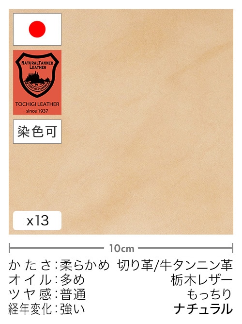 【切り革】牛タンニン革 / 栃木レザー / もっちり (ナチュラル)