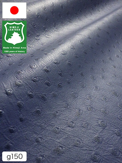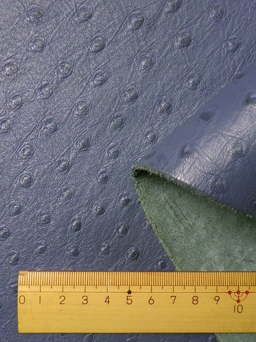 【半裁ハーフ】牛クロム革 / 姫路レザー / オーストリッチ型押し / 1.5mm (ブルー)