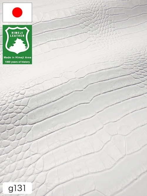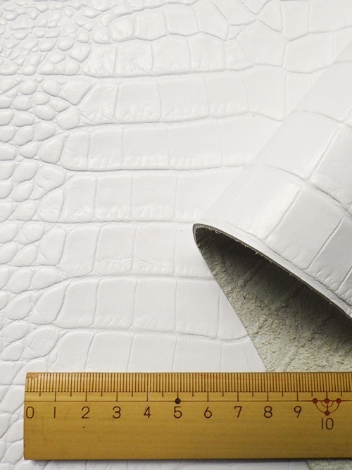 【半裁】牛クロム革 / 姫路レザー / ワニ型押し / 1.5mm (スノーホワイト)