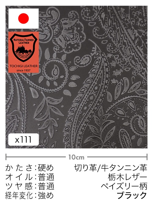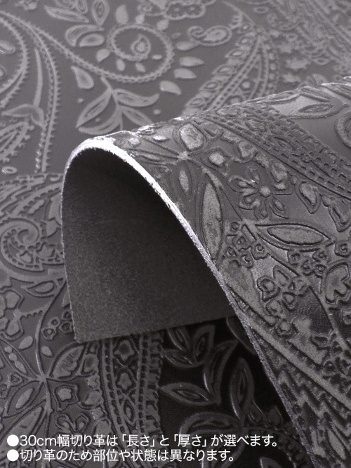 【切り革】牛タンニン革 / 栃木レザー / ペイズリー柄 (ブラック)