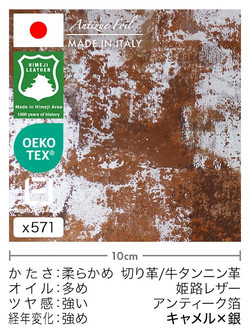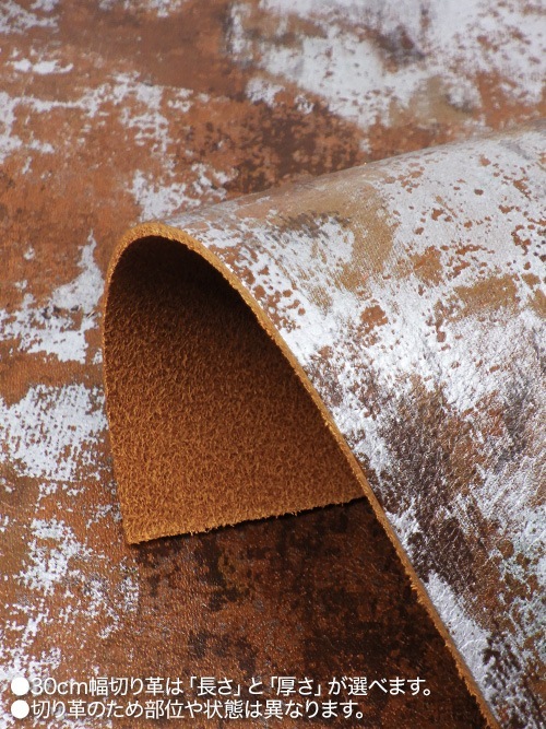 【30cm幅切り革】牛タンニン革 / 姫路レザー / アンティーク箔 (キャメル×銀)