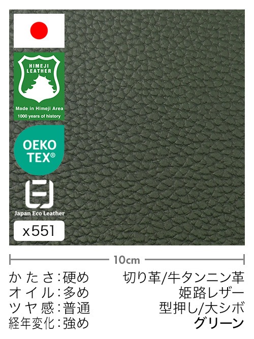【切り革】牛タンニン革 / 姫路レザー / 型押し / 大シボ (グリーン)