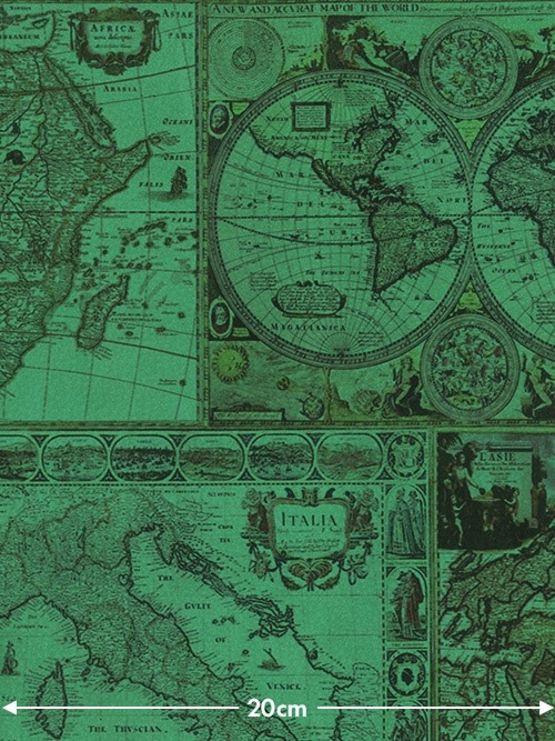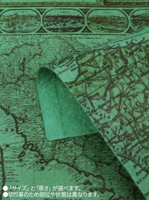 【切り革】豚革 / 古地図柄 (ターコイズ) [5%OFF]