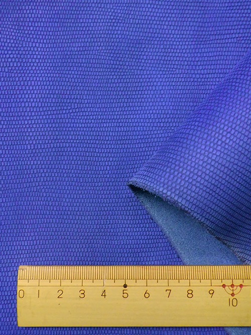 価格:90円→45円 ds単価(税抜)形状:半裁種類:姫路レザー / トカゲ型押し / 銀スリ厚さ:1.3mm前後色 :ブルー