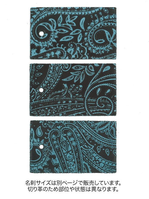 【切り革】牛タンニン革 / 瀬戸内レザー / 青芯 / ペイズリー柄 (青×黒)