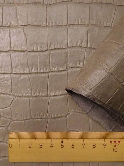 【半裁】牛クロム革 / 瀬戸内レザー / ワニ型押し / 1.0mm (グレージュ) [50%OFF]