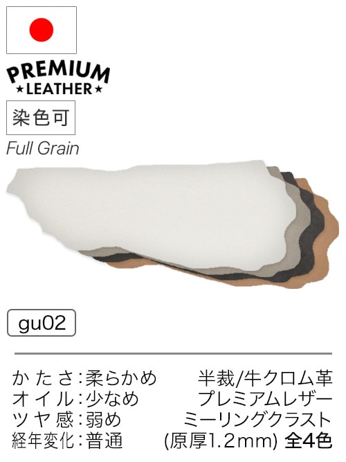 【半裁】牛クロム革 / プレミアムレザー / ミーリングクラスト / 原厚1.2mm前後 (全4色)