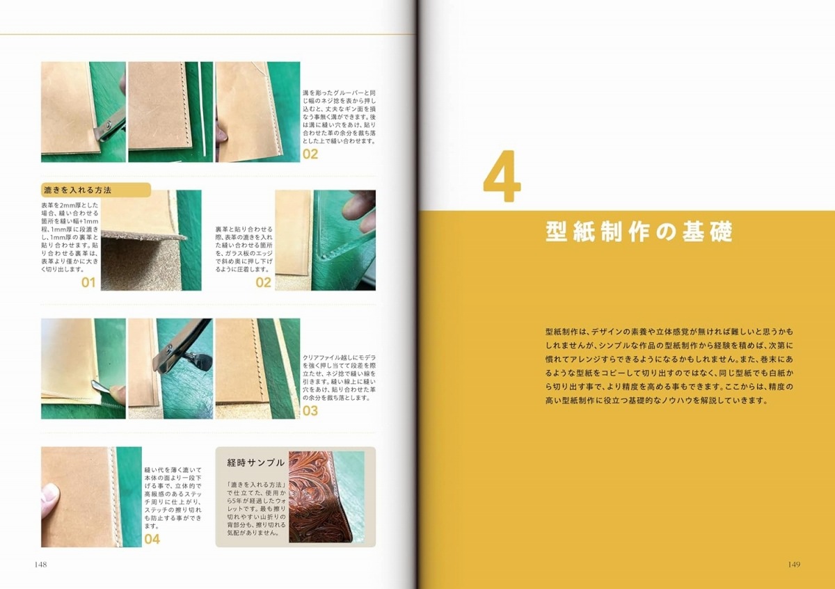 仕立物やカービング作品を制作する作家、工具・材料店の店主、そして教室や講習会の講師と、3つの立場からレザークラフトに深く関わってきたクラムレザークラフト代表の藤田一貴氏。そんな同氏が至高の作品を作り上げるために日夜研究し続けて確立した技術や、顧客や生徒の悩み、相談を受けて解決に導いた技術の数々を合理的な方法論に基づき豊富な実例写真と共に詳しく解説した書籍です。
