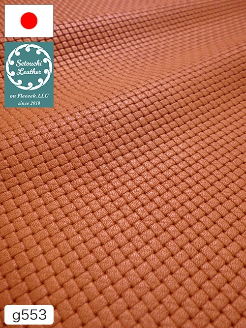 価格:90円→45円 ds単価(税抜)形状:半裁種類:瀬戸内レザー / メッシュ型押し厚さ:0.9mm前後色 :オレンジブラウン