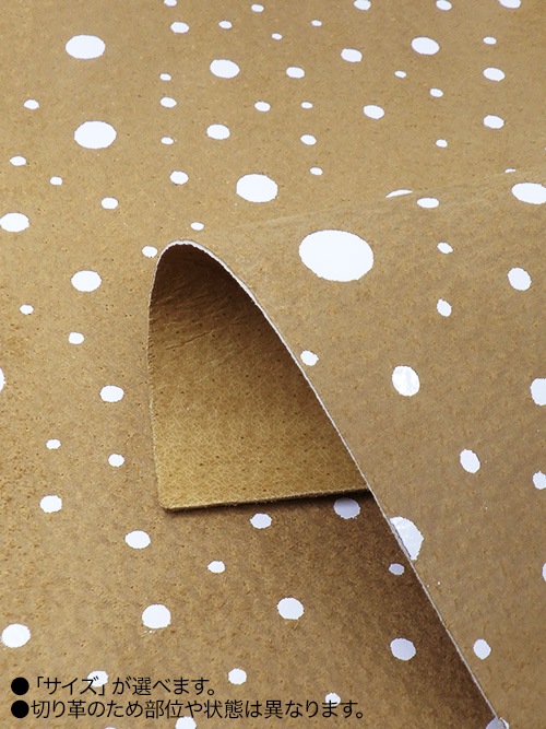 【切り革】豚革 / スエード / ドット柄 (キャメル×白)