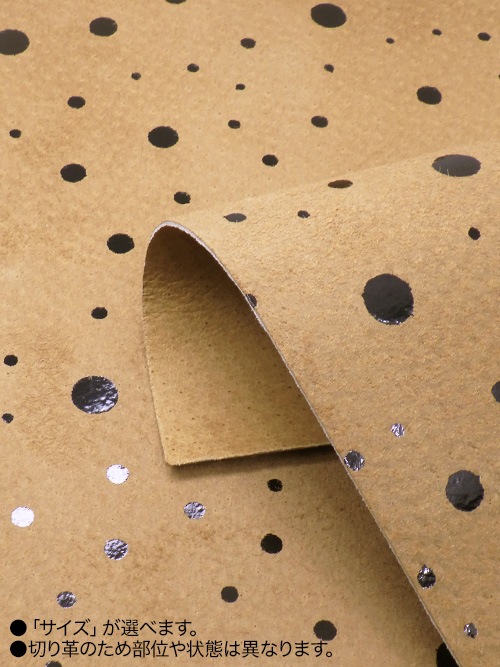 【切り革】豚革 / スエード / ドット柄 (キャメル×黒)