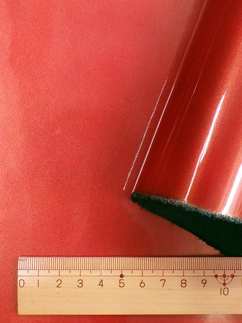 価格:90円→45円 ds単価(税抜)形状:半裁種類:姫路レザー / エナメル厚さ:1.3mm前後色 :メタリックレッド