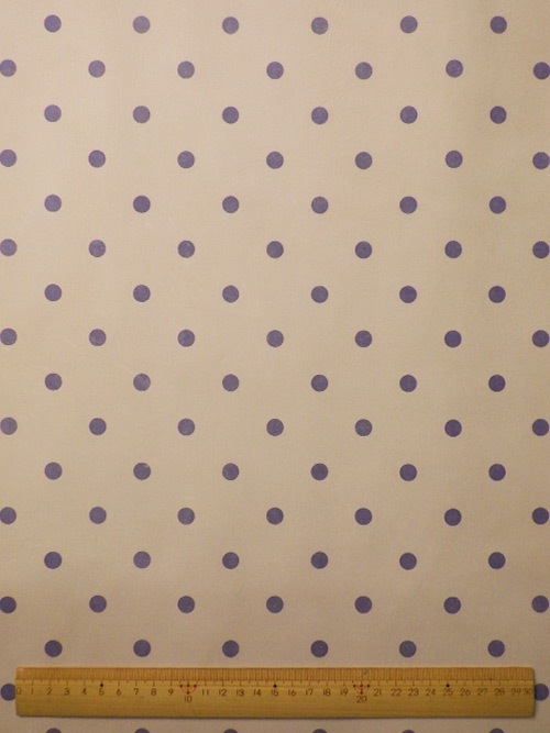 価格:90円→45円 ds単価(税抜)形状:半裁種類:姫路レザー / ドット柄プリント厚さ:1.2mm前後色 :ベージュ×パープル