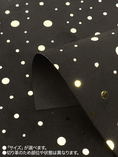 【切り革】豚革 / スエード / ドット柄 (黒×金)