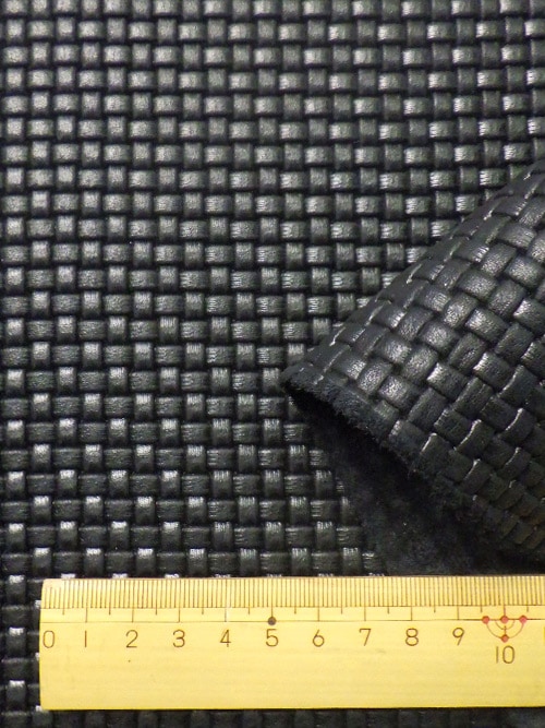 【半裁ハーフ】牛クロム革 / 姫路レザー / メッシュ型押し / 1.5mm (ブラック) [50%OFF]
