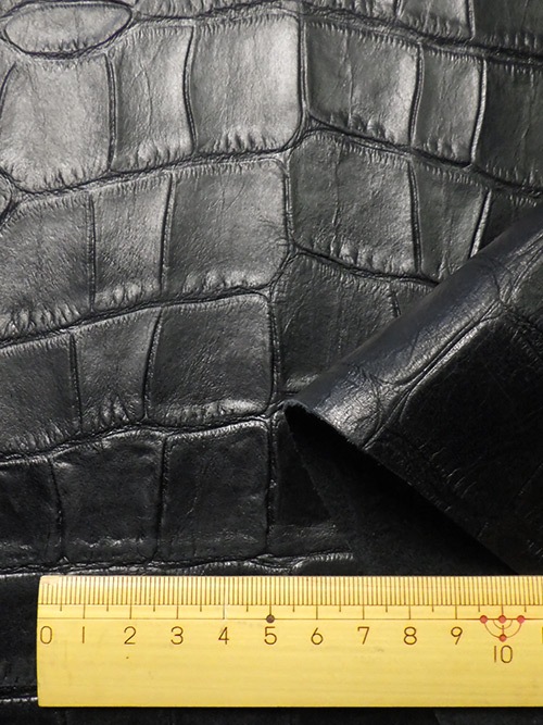【半裁ハーフ】牛クロム革 / 姫路レザー / ワニ型押し / 0.8mm (ブラック) [50%OFF]