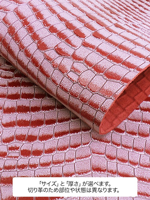 【切り革】牛革コンビ鞣し / セトウチレザー / ホワイトワックス / カッティングクロコ型押し / 赤×白